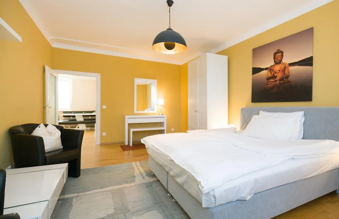 7-slaapkamer Vienna Apartment 1010 heeft een centrale ligging en biedt gemakkelijke toegang tot het Keizerlijk paleis van Hofburg binnen 16 minuten wandelafstand. Samen met toegang tot een geldautomaat biedt het appartement gasten uitzicht op de stad.